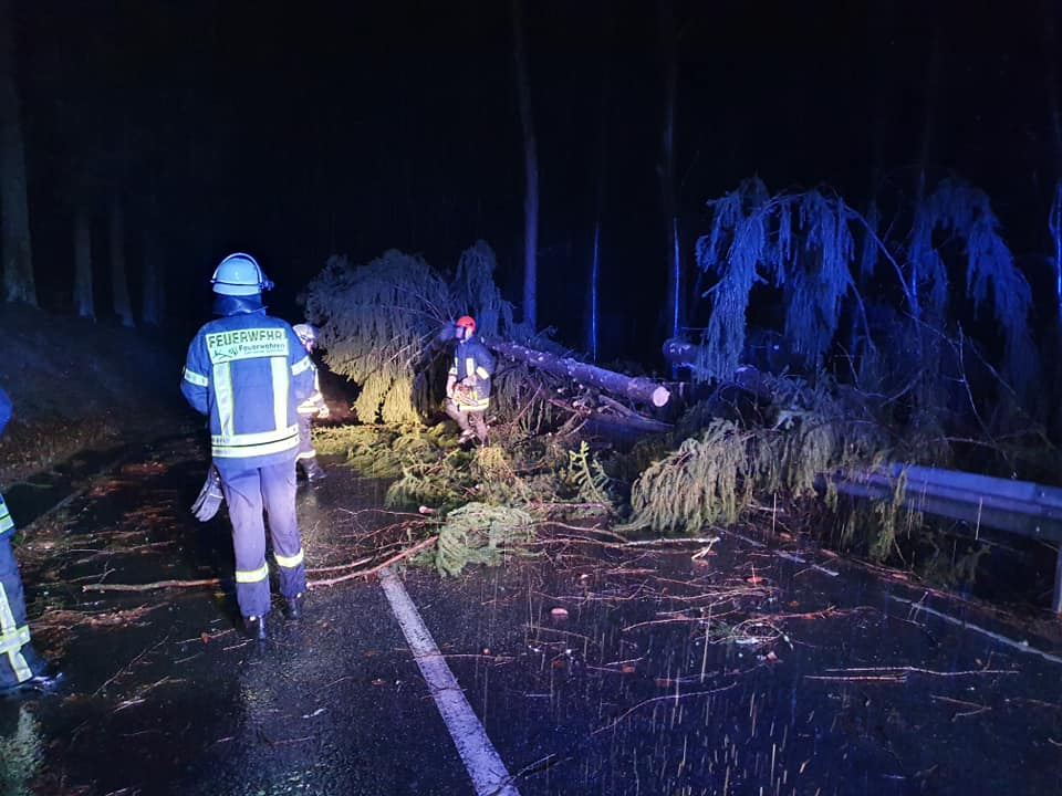 Beim eintreffen wurde erst eine abgerissene Buchenkrone vorgefunden, welche schnell beseitigt war. Nach weiteren 500 Meter versperrten 3 Bäume die Landesstraße L3023 nach Schmitten. Während des Einsatzes war es zum